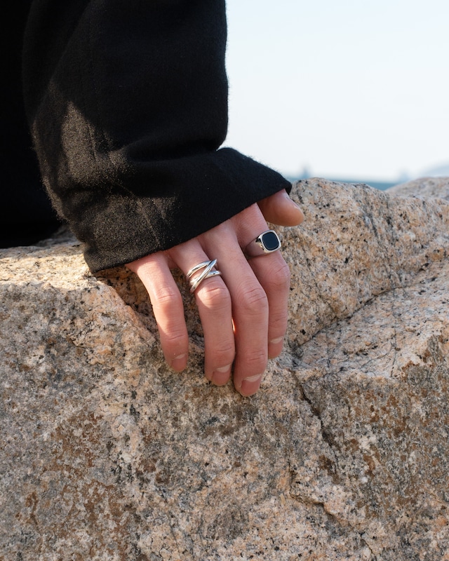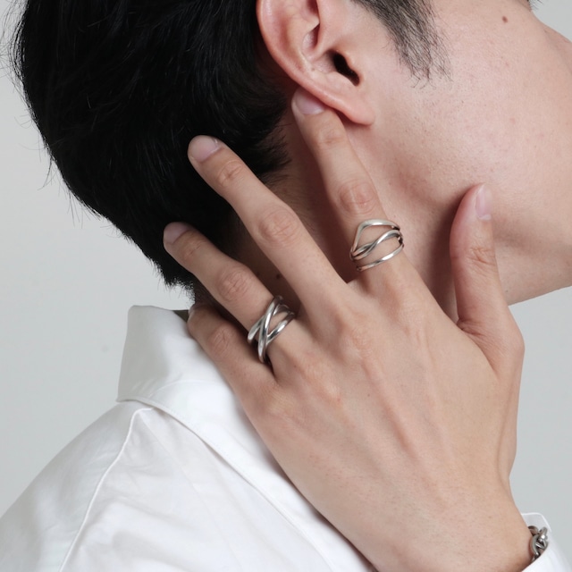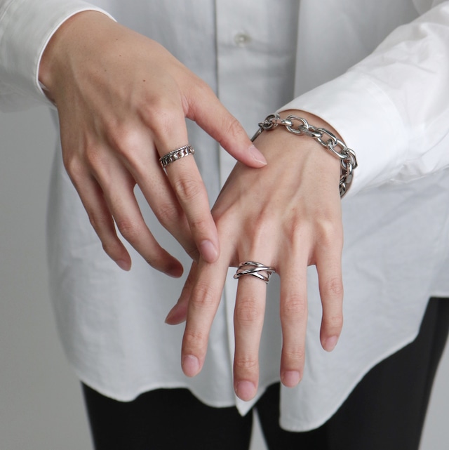 3本のラインが斜めにクロスしたデザインのリング